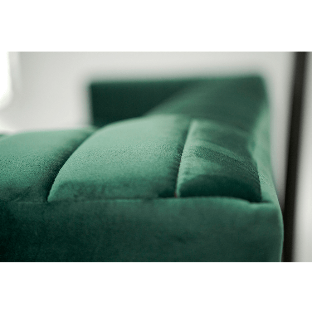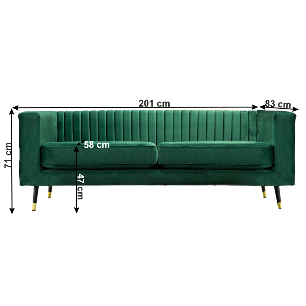 Kárpit anyaga: Kronos szövet A szövet kopásállósága: 60 000 Martindale Kárpit színe: 19 smaragd Lábak anyaga: fa Lábak színe: fekete/gold sárgaréz arany Méretek (SzéxMéxMa): 201x83x71 cm Ülésmagasság: 47 cm Ülésmélység: 58 cm Alsó tér magassága a padlótól: 12 cm Teherheltőség: 100 kg Ülőrész Betét: rugós falista/pur hab Kárpitozott Tépőzáras ülőrész Bontásban szállítva Rendelhető 5 Kronos szövet színváltozatban. Egyedi megrendelés esetén szükség van az adott összegnek a 10%-át befizetni,mint előleg. Az előleg befizetése után az Ön követelményét benyújtjuk a gyártóna. Szállítási idő 8-10 hét.