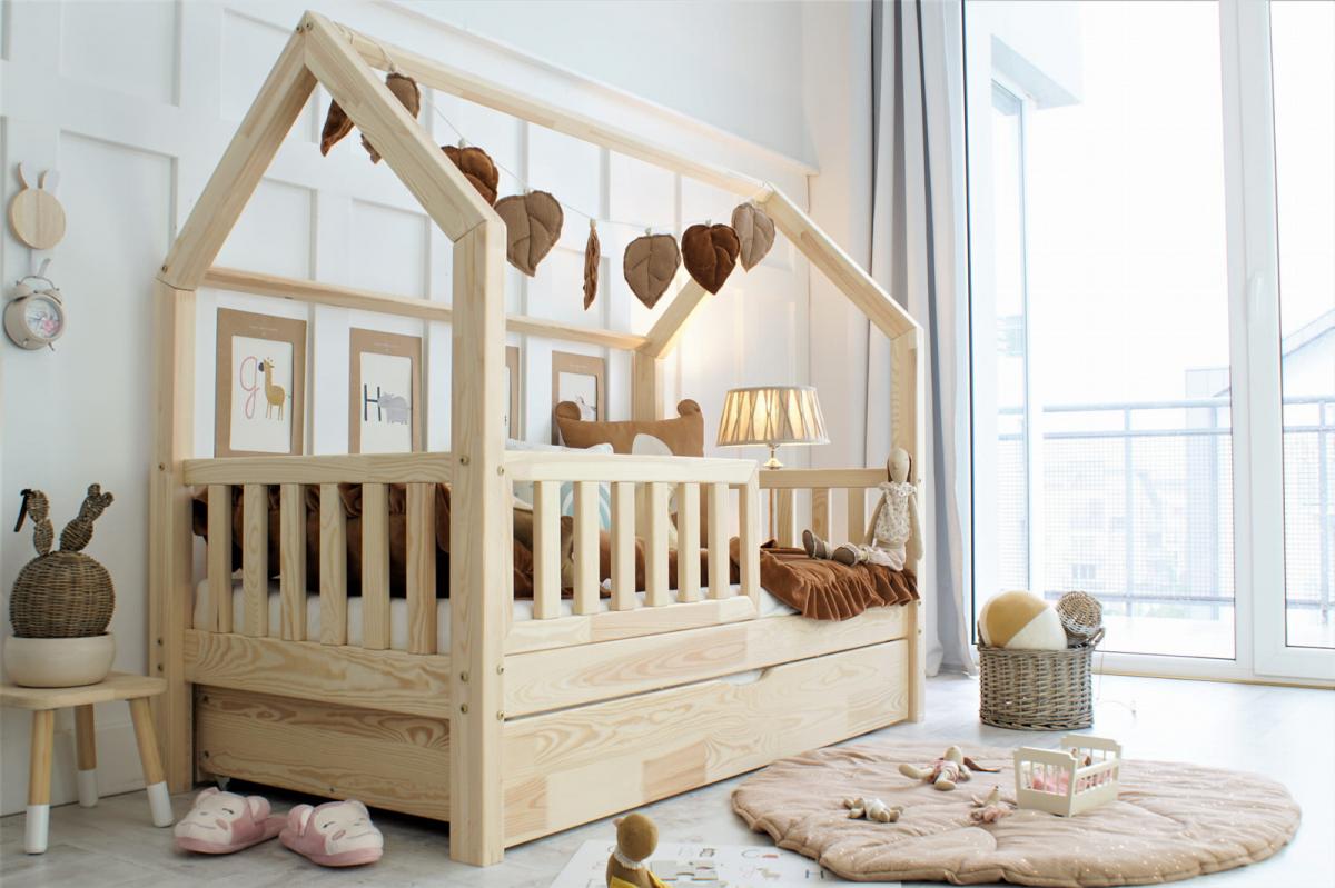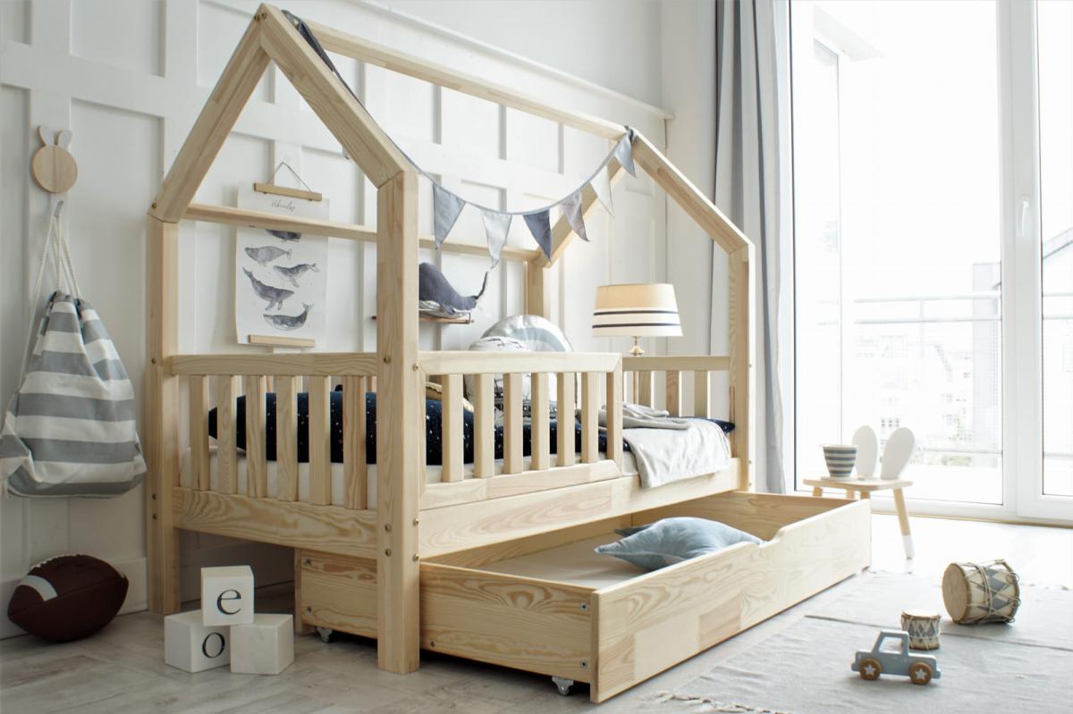 A Bianco Plus házikóágy egy modern, skandináv stílusú fiókos gyerekágy, amely tökéletes választás minden gyerekszobába. Letisztult formája, természetes faanyaga és a praktikus fiók kombinációja igazi kedvencé teszi a szülők körében. A házikó forma otthonos, barátságos hangulatot teremt, miközben a kialakítás megfelel a Montessori elveknek, vagyis biztonságos és önállóságra ösztönző alvókörnyezetet biztosít.