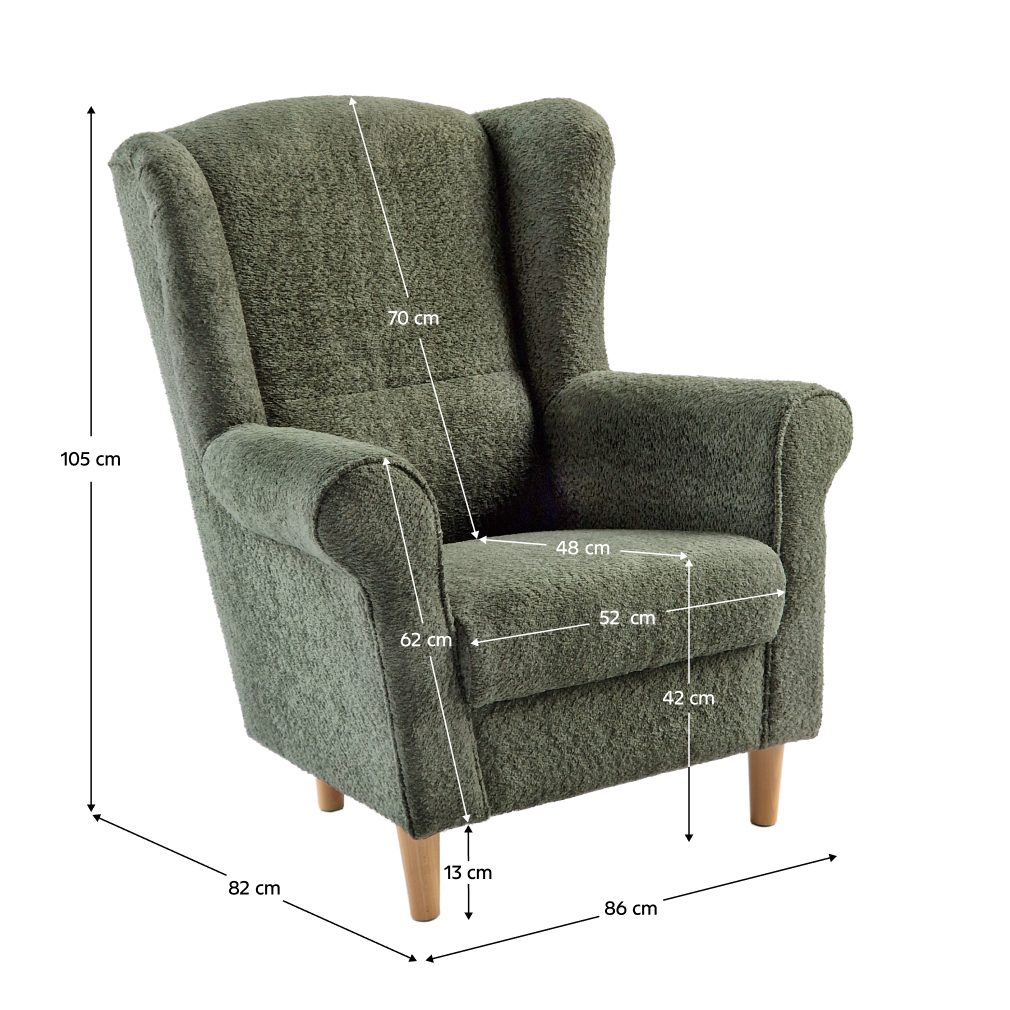 Anyaga: szövet Coral Bouclé 20/fa/PUR habszivacs