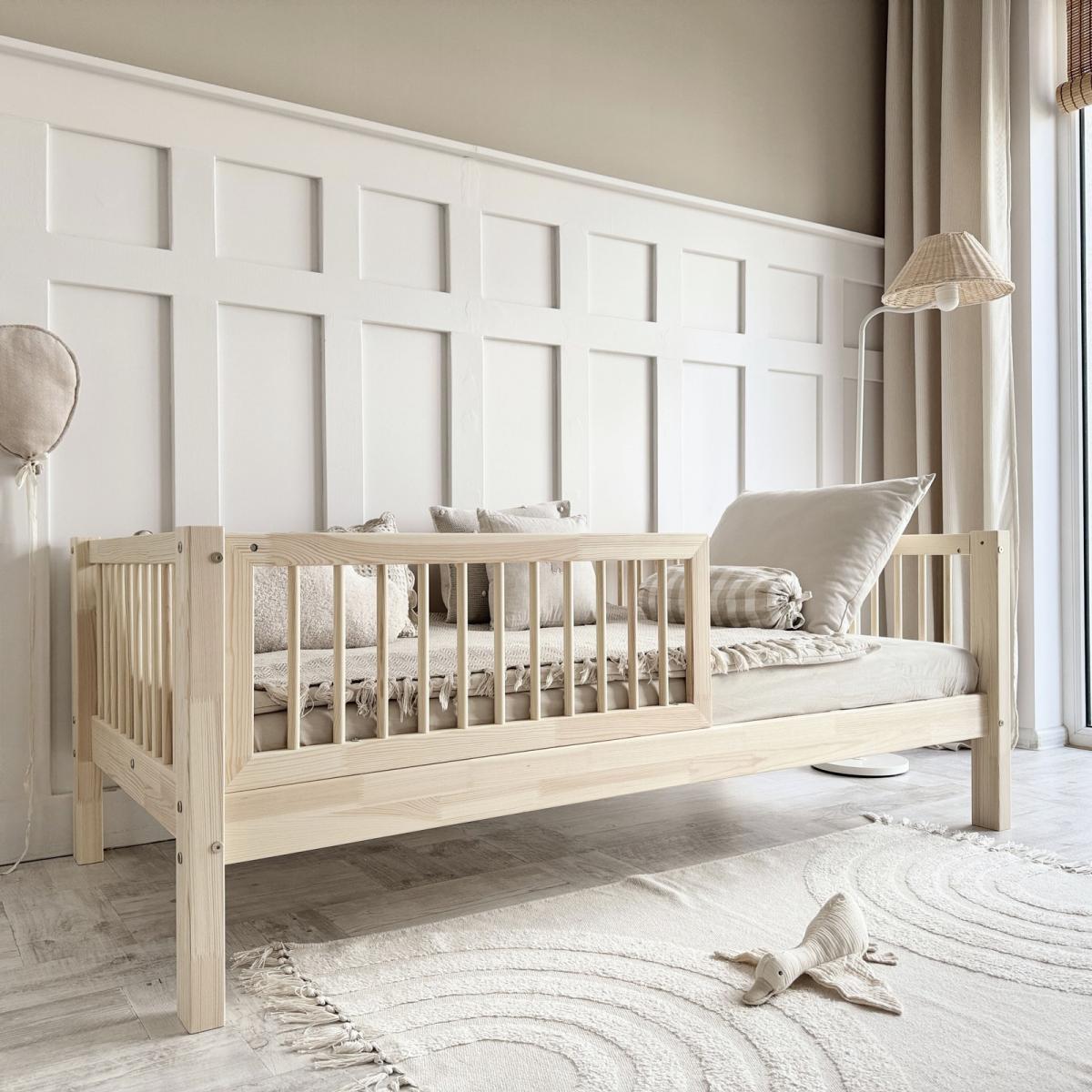 BASIC ALTO ágy egy klasszikus, skandináv stílusú gyerekágy, körben magas leesésgátló korlátokkal, amely a biztonságos és kényelmes alvást szolgálja.