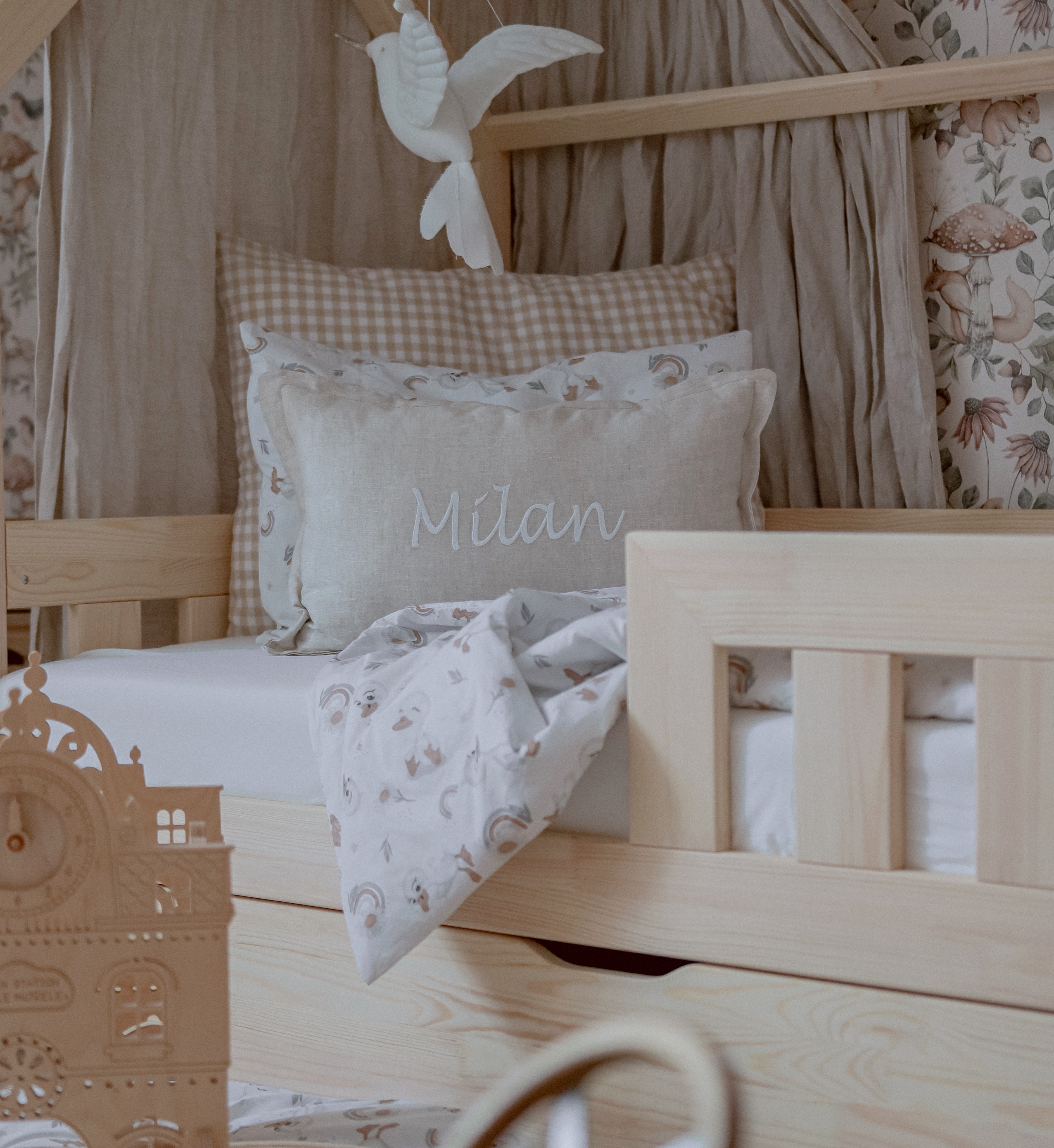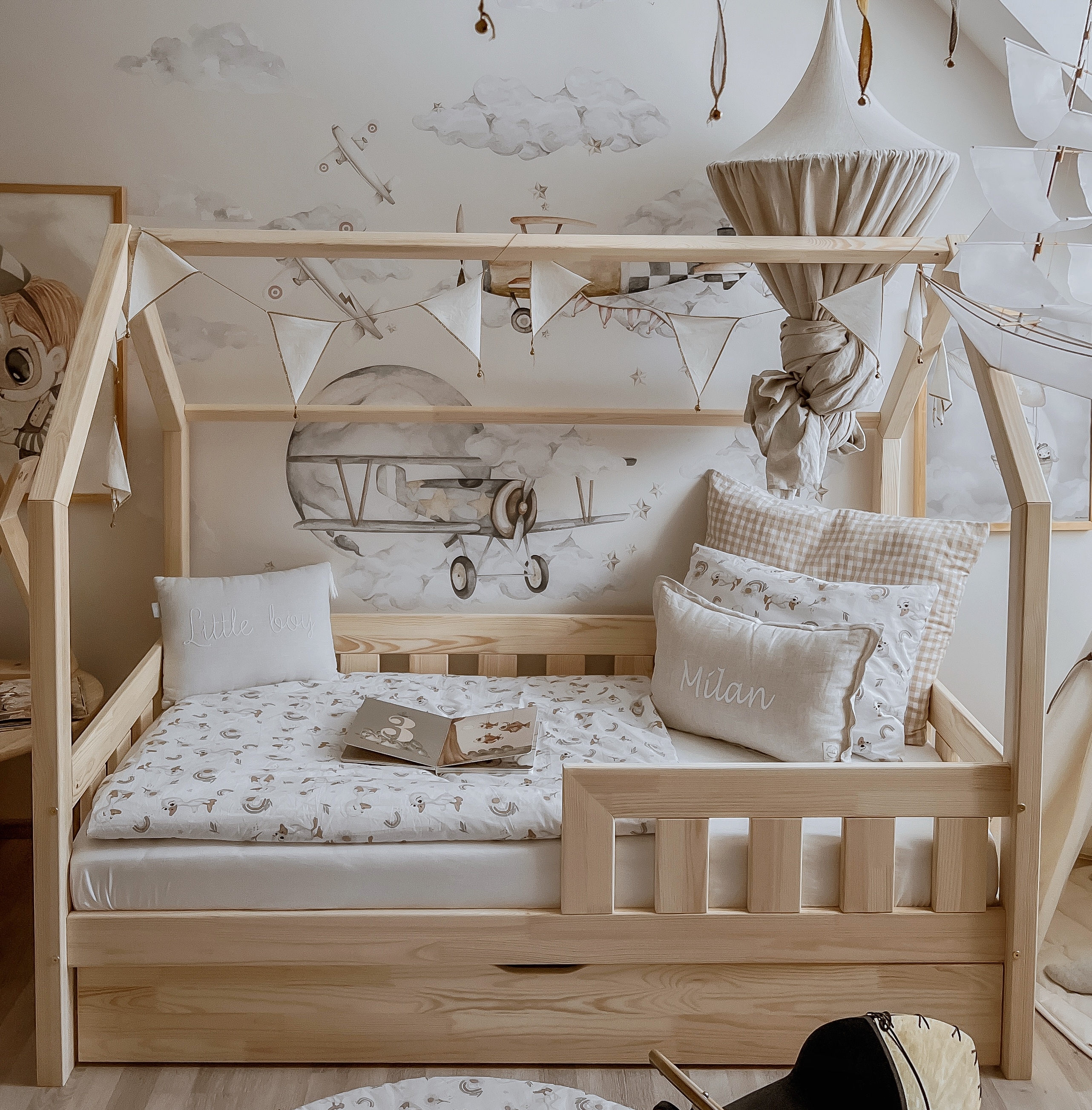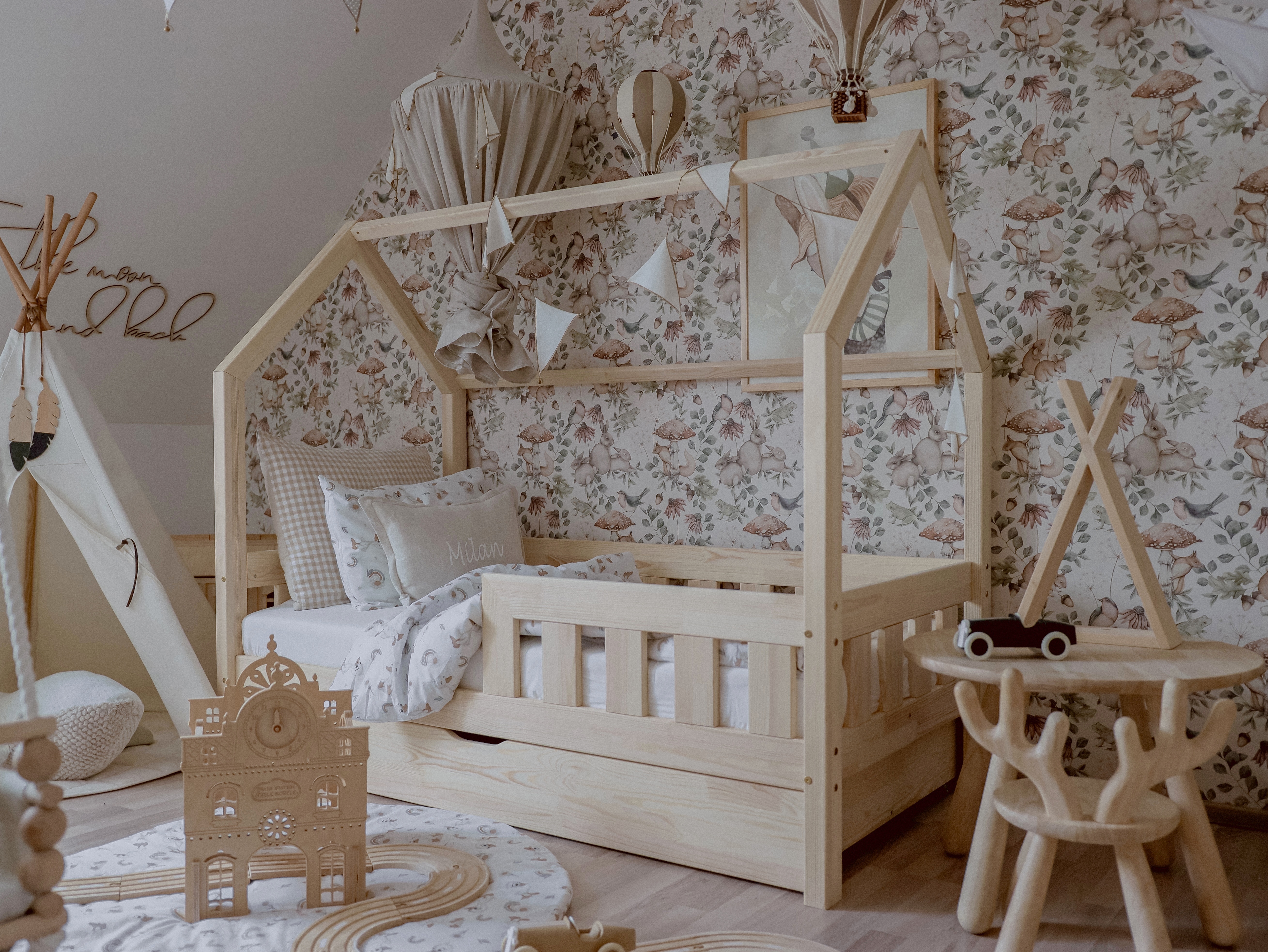 MAXI PLUS házikó ágy – leesésgátlós, biztonságos, ágyneműtartós kivitel, skandináv stílusban