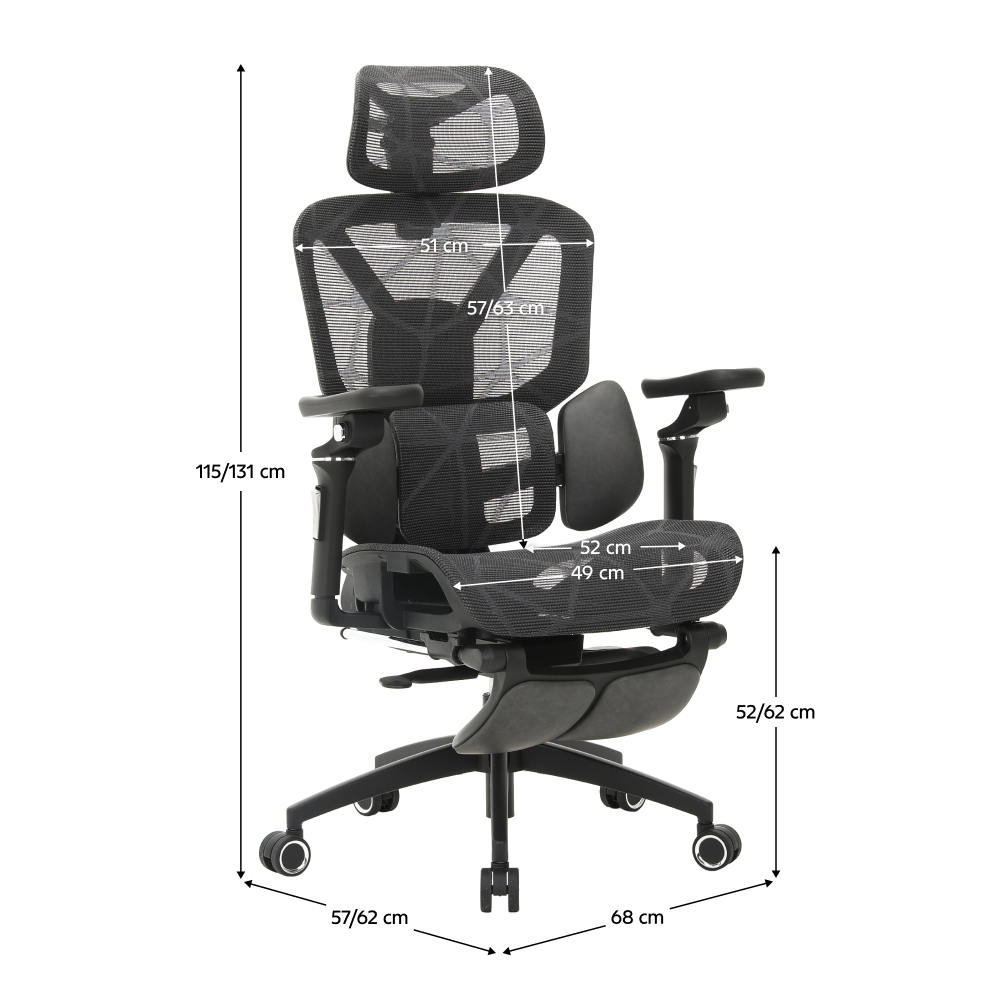 Méretek (SzxMéxMa): 68x57-62x115-121/125-131 cm