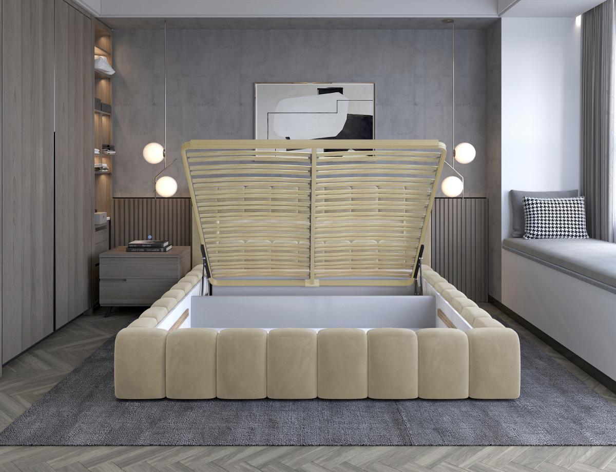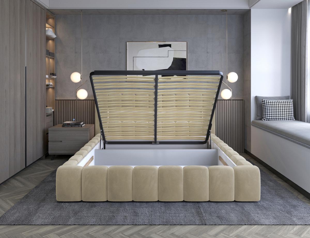 A Lamica egy nagyon kényelmes, puha és eredeti, glamour stílusú ágy, amely egyedi formájával és stílusával rabul ejti a tekintetet. Ez a bútordarab egy vázból és egy fémkeretből áll. Két tágas tárolórekesszel is rendelkezik az ágynemű számára. Az alvófelület méretei - három változatban kaphatók - 140/160/180x200 cm bőséges helyet biztosítanak a kényelmes pihenéshez különböző méretű hálószobákban, az egyéni preferenciákhoz és lehetőségekhez igazítva. Ágyunkat a konstrukciója különbözteti meg, mivel a magas fejtámla és az ágyoldalak további habszivacsból készültek. Az esztétikai élményt a hosszanti, tágas steppelések fokozzák. A széles színválaszték megkönnyíti az ágy összehangolását a szoba általános dekorációjával. További előny a LED-es fejtámla-világítás, amely még élvezetesebbé teszi a pihenést.