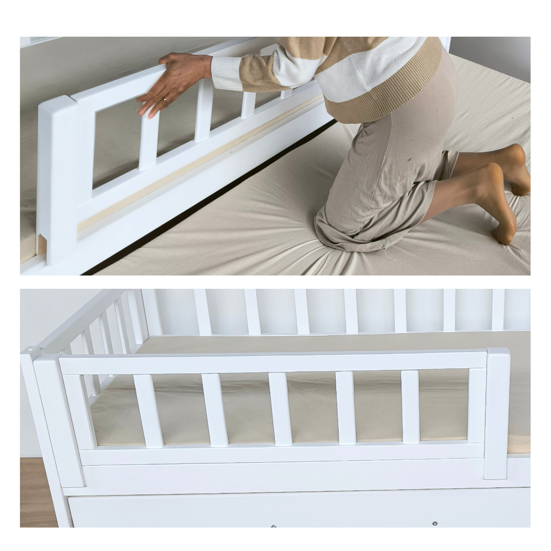 Könnyed mozdulattal le és felhelyezheted, maga a matrac is az ágy oldalhoz szorítja, így nem kell félned, hogy este esetleg leesik, vagy gyermeked könnyen leemeli.