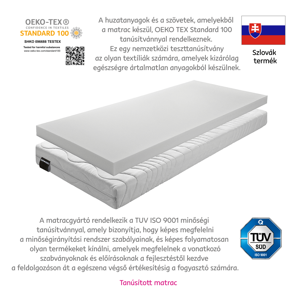 A hab színe változhat. A matrac akár teljesen más színű is lehet, mint az a képen látható. Tulajdonságait azonban ez semmilyen módon nem befolyásolja.