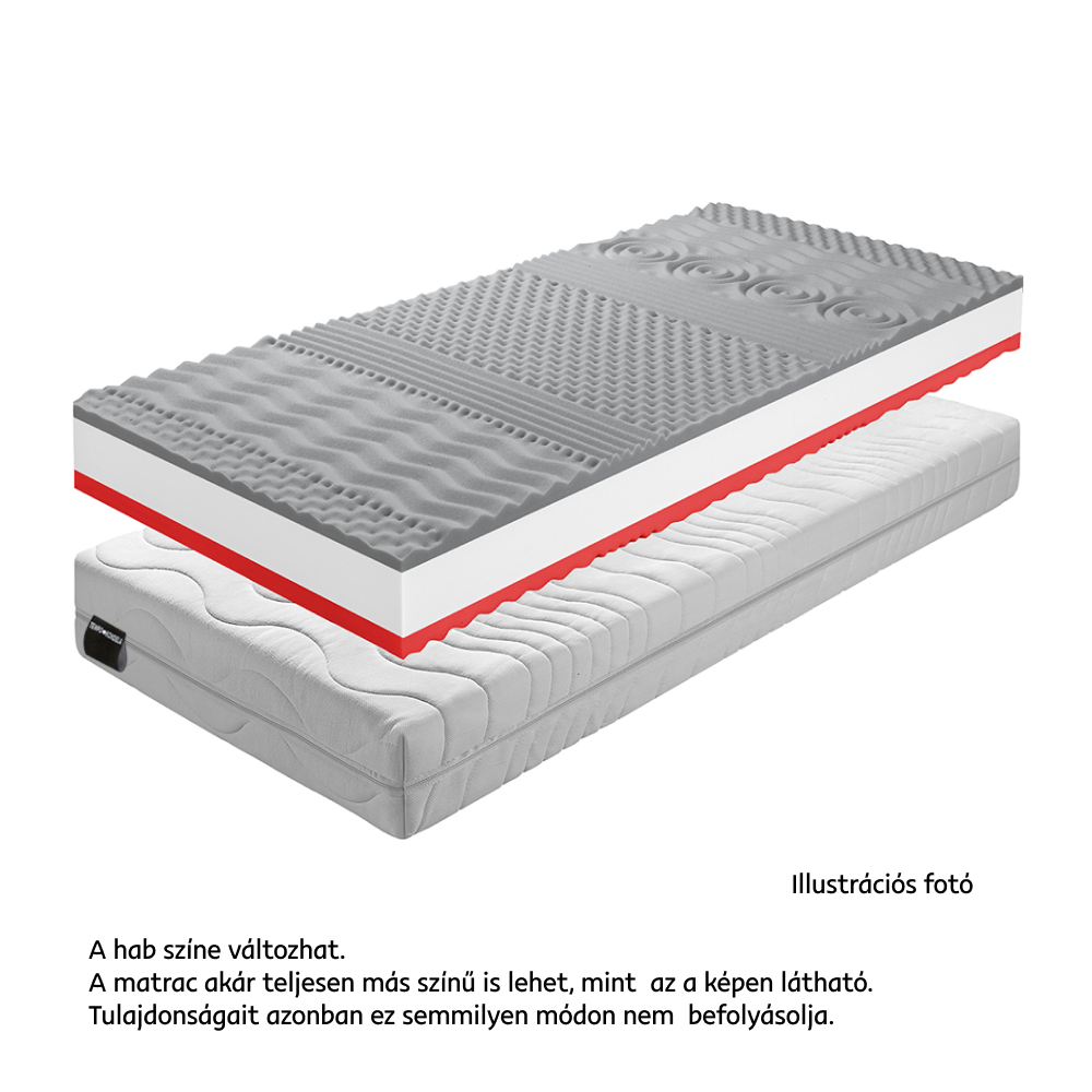 A hab színe változhat. A matrac akár teljesen más színű is lehet, mint az a képen látható. Tulajdonságait azonban ez semmilyen módon nem befolyásolja.