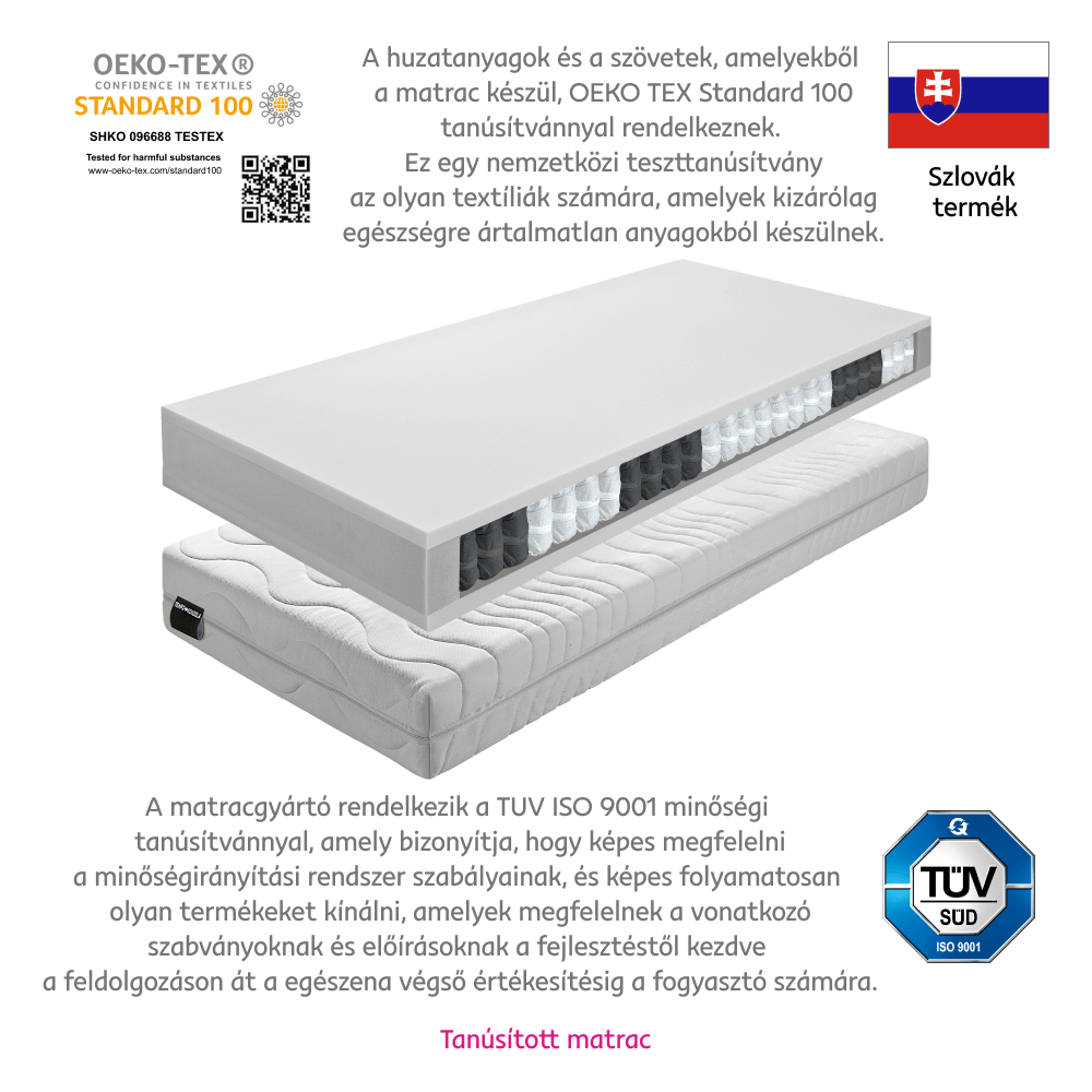 Anyag: táskarugók/poliuretán hab/antiallergén huzat/nemez