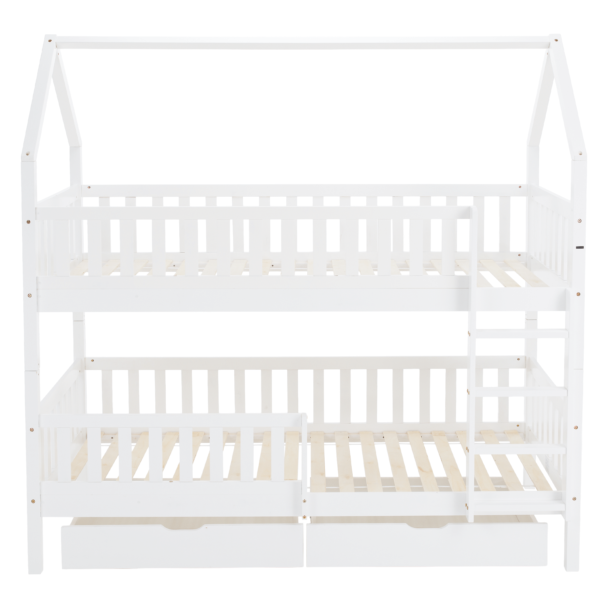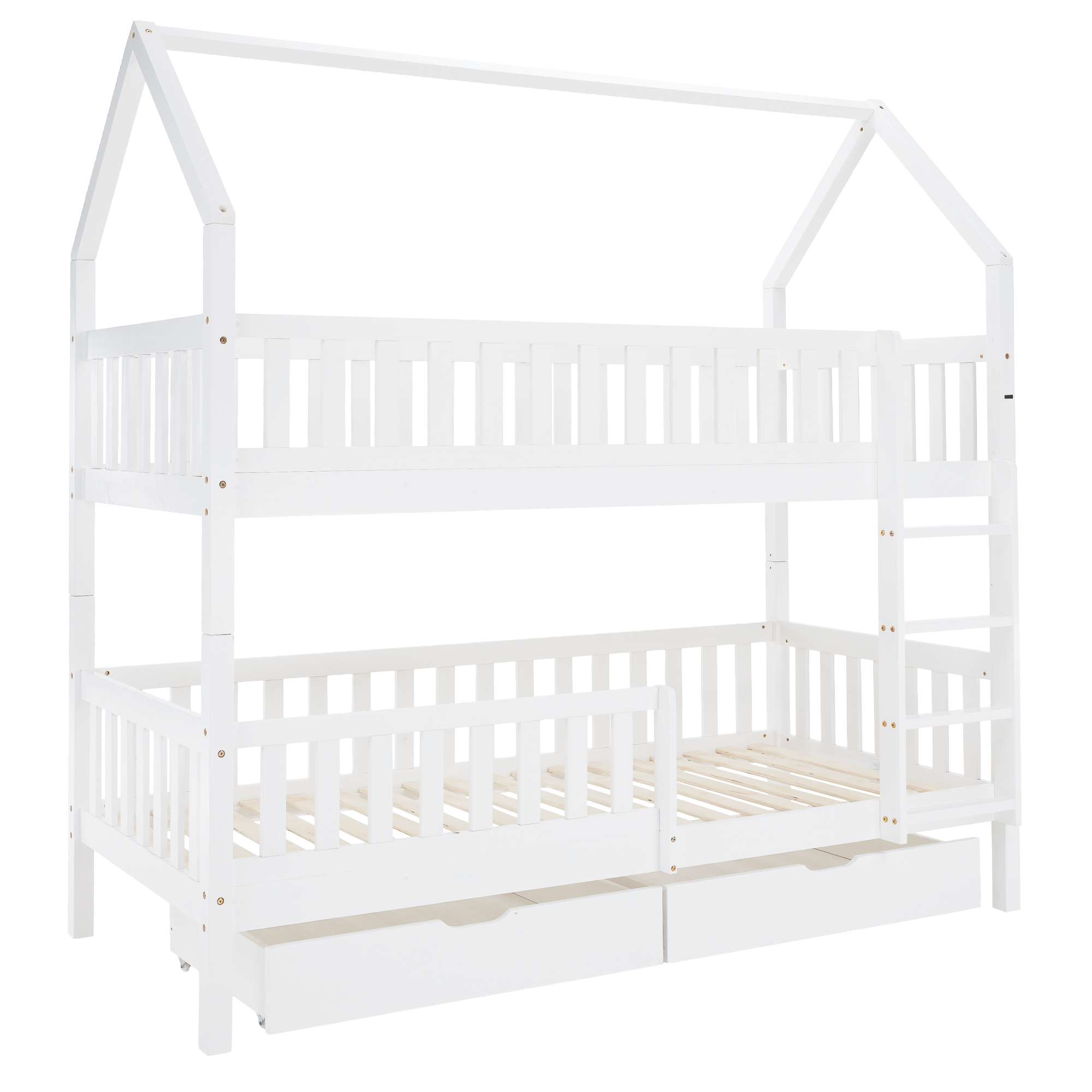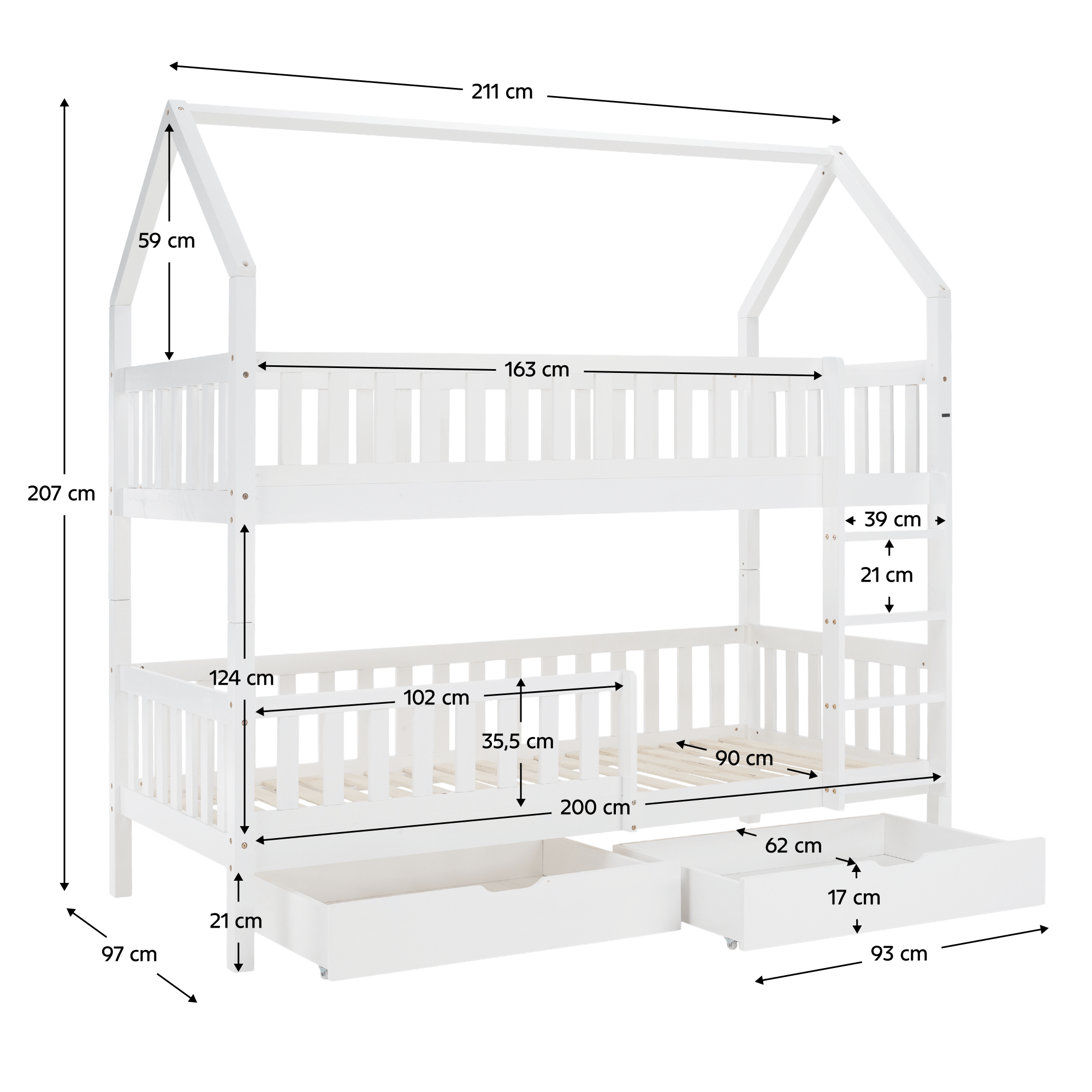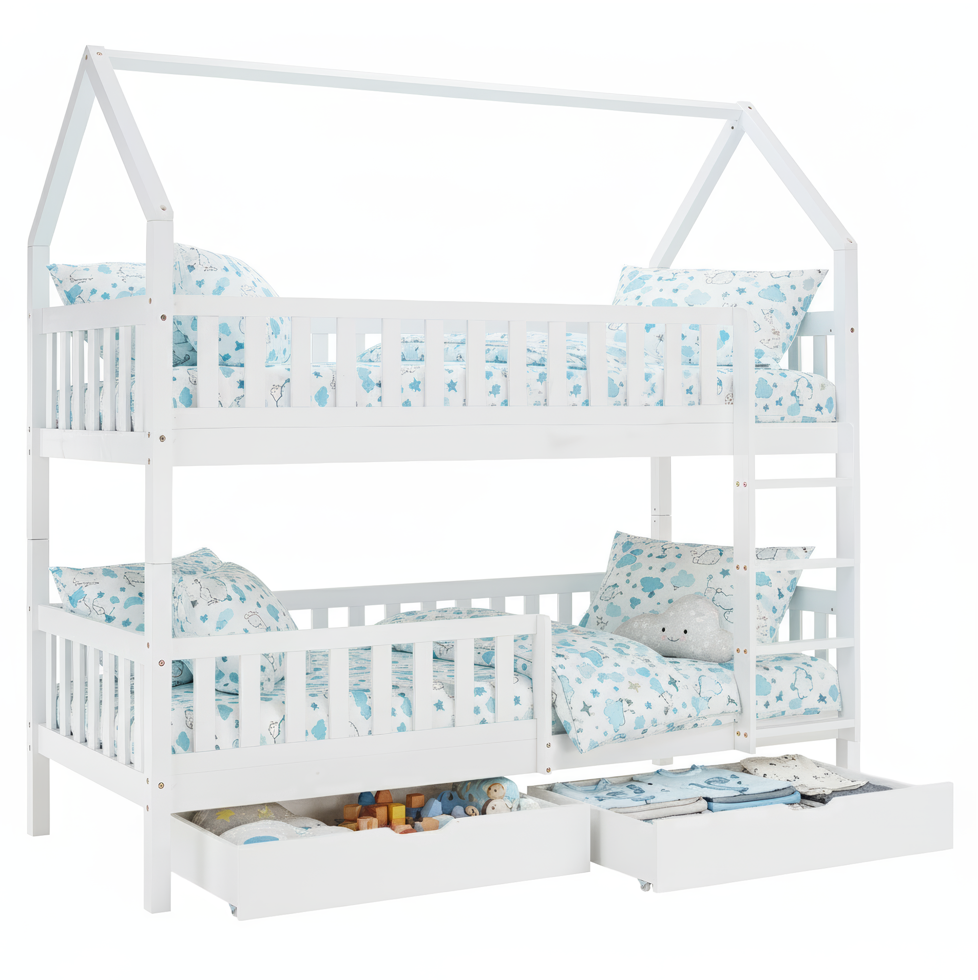 A leesésgátló és a stabil létra garantálják a biztonságos használatot, míg az alsó fiókok extra tárolóhelyet biztosítanak ágyneműknek, játékoknak vagy ruháknak.