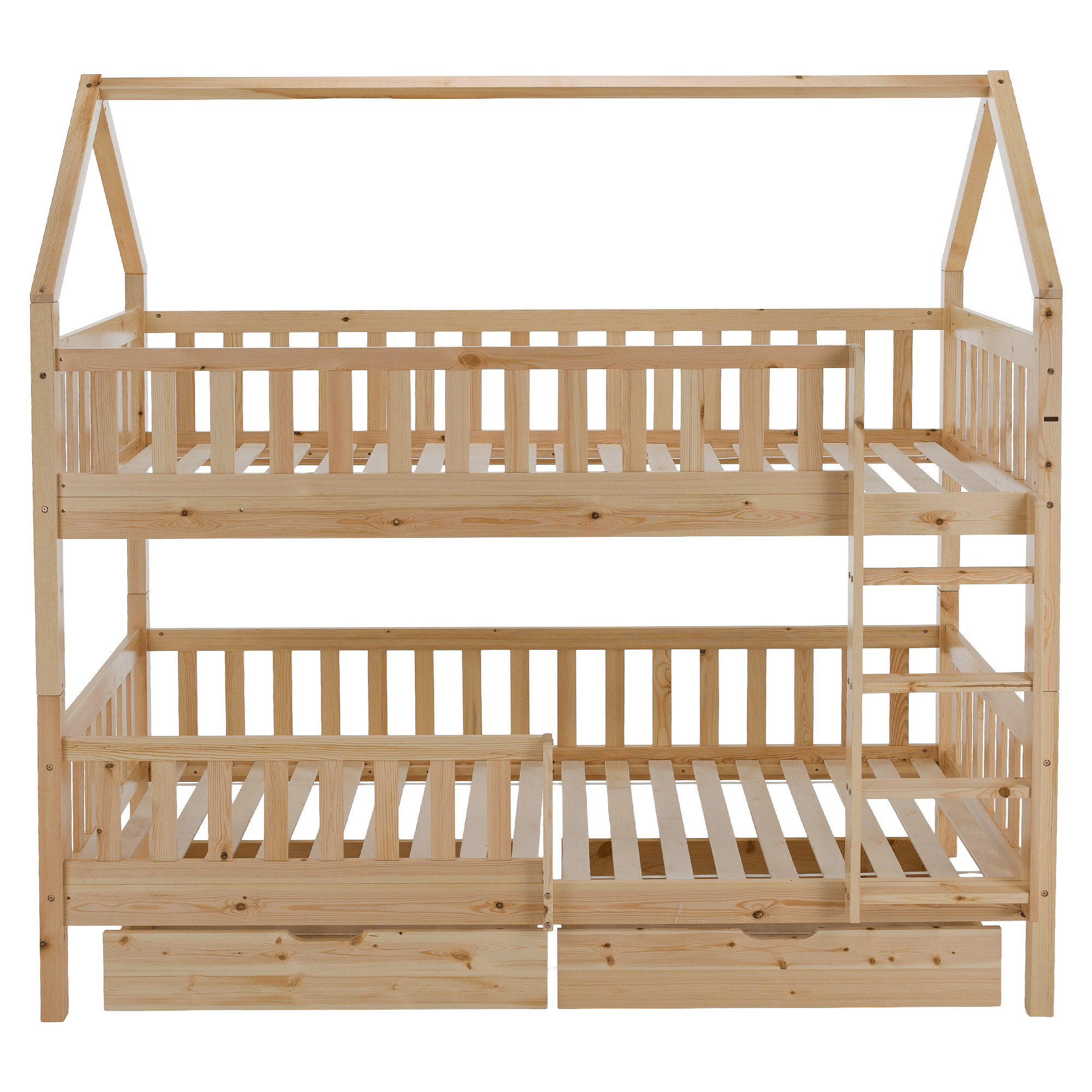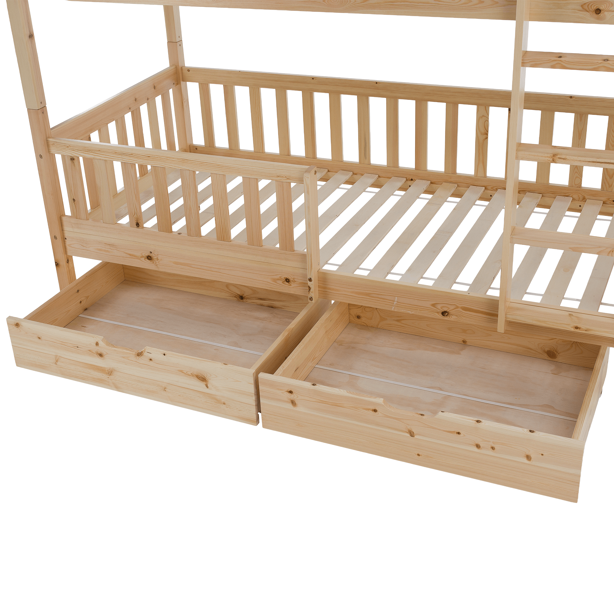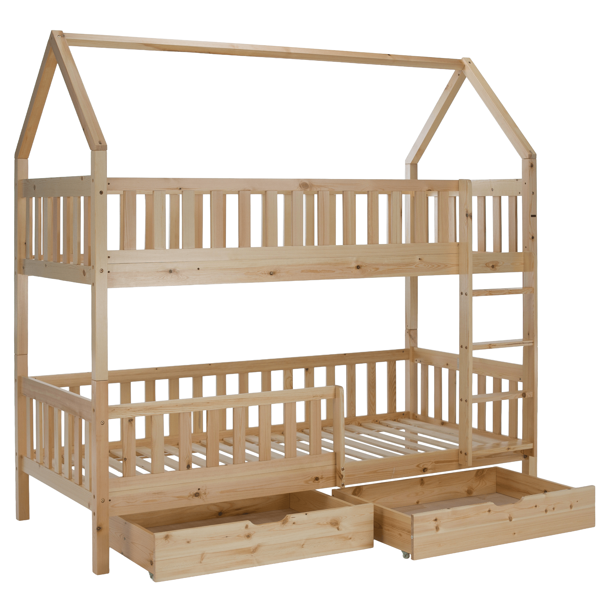 Az alsó ágy alatti fiókok bőséges tárolóhelyet kínálnak játékoknak, ágyneműnek vagy ruháknak, így segítik a rendezettséget a gyerekszobában.