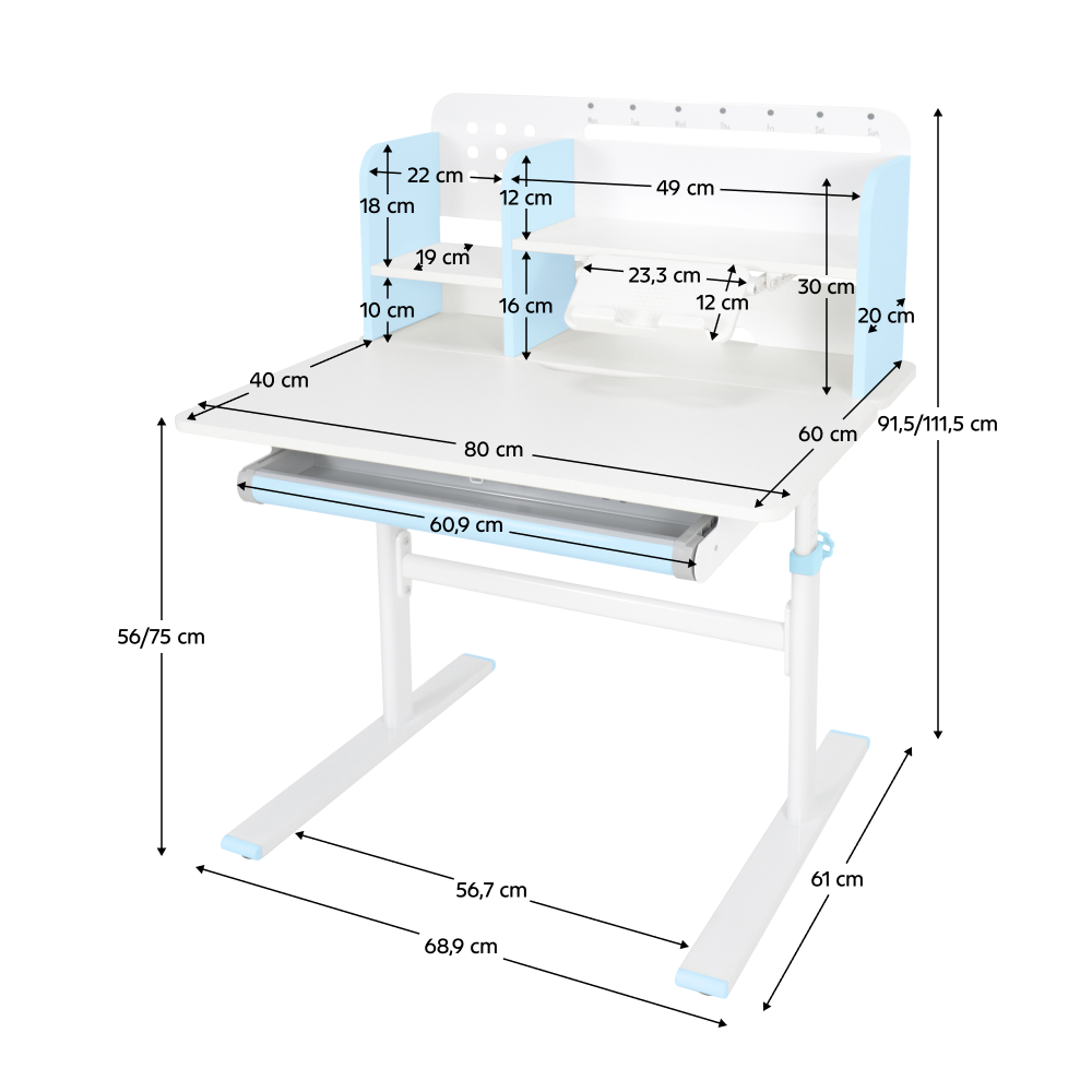 Asztal méretei (SzxMéxMa): 80x60x91,5-111,5 cm