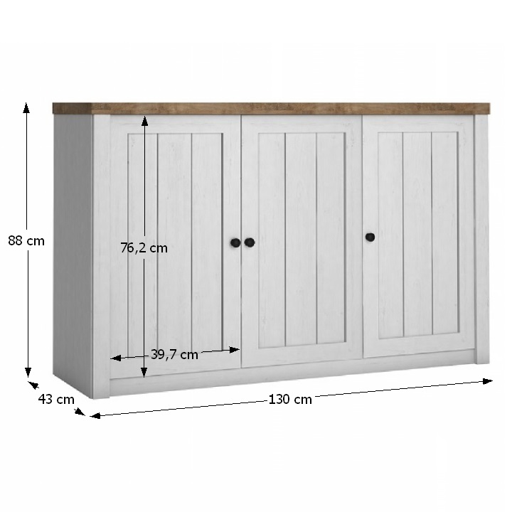 A komód méretei: 130x88x43 cm (Szé/Ma/Mé)