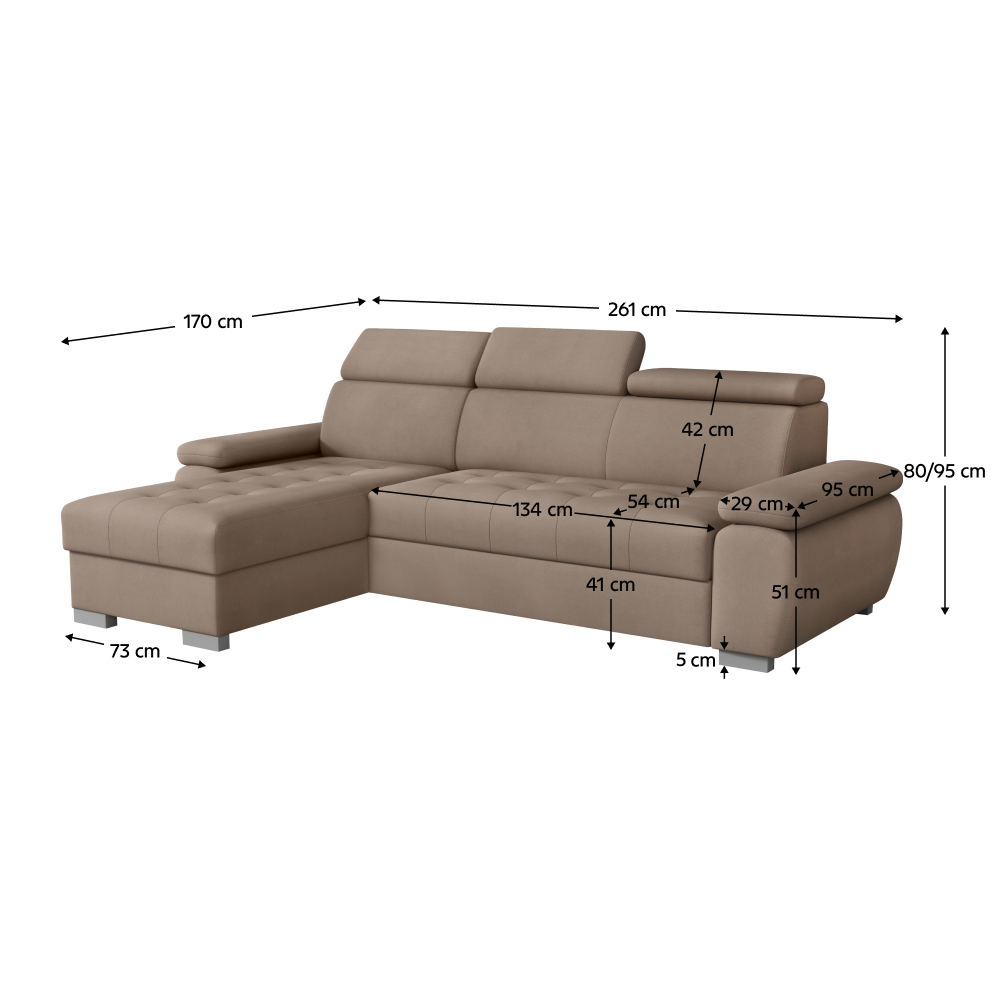 Méretek (SzxMéxMa): 261x170x80/95 cm