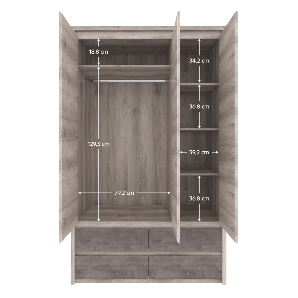 Méretek (SzxMéxMa): 126,6x59x210 cm