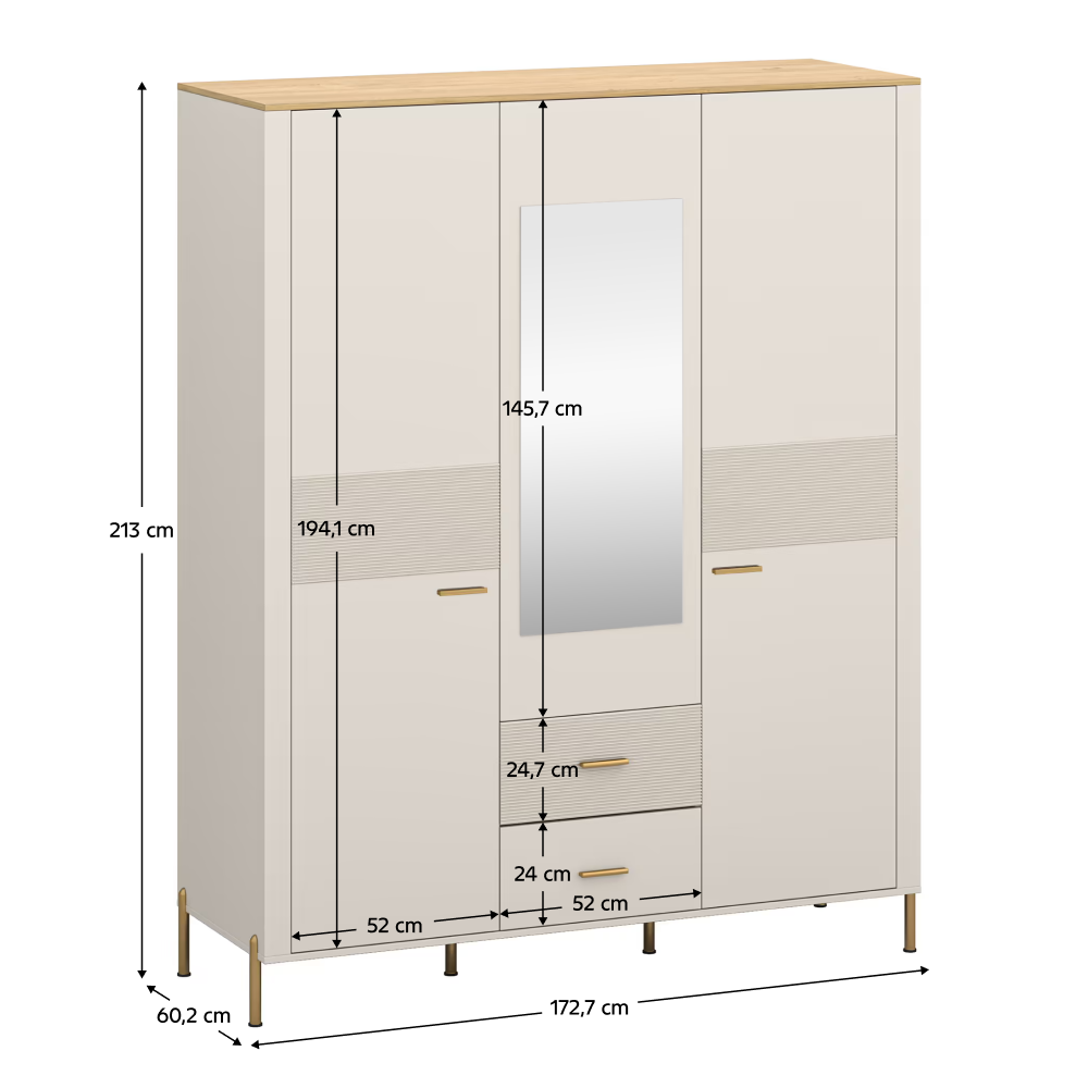 Méretek (SzxMéxMa): 172,7x60,2x213 cm