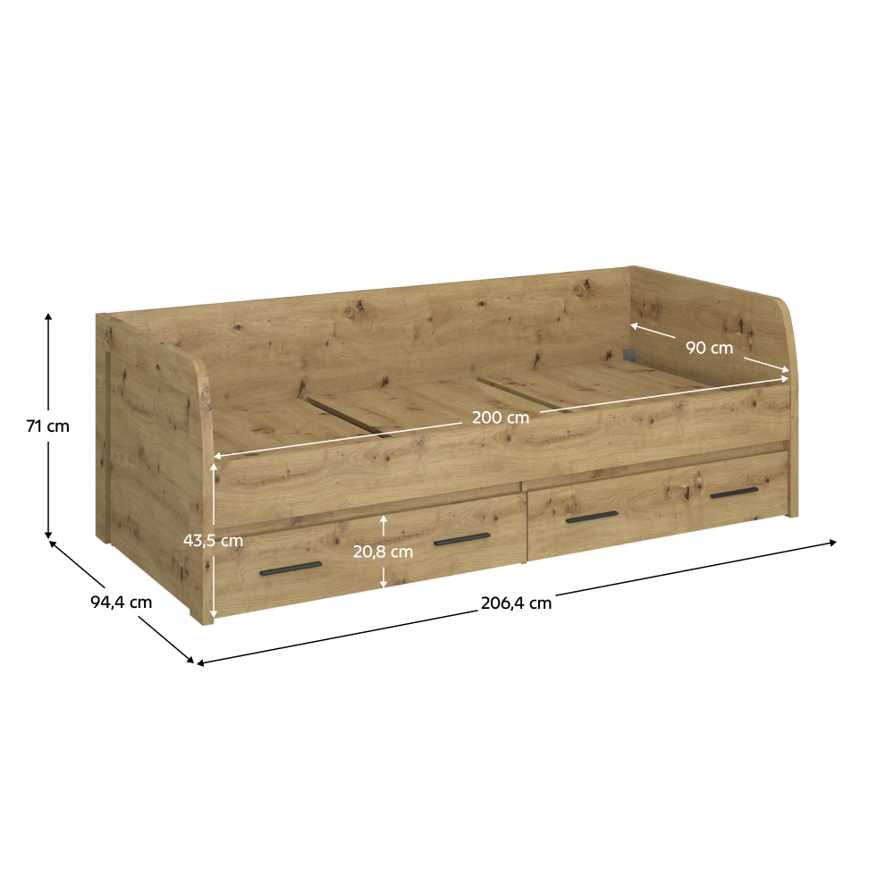 Méretek (SzxMéxMa): 94,4x206,4x71 cm