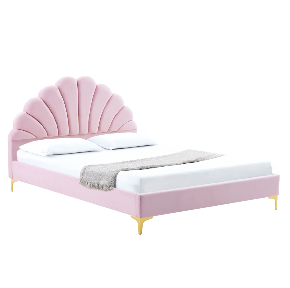 Ágy ágyráccsal. 140x200. rózsaszín Velvet szovet. ISADORA