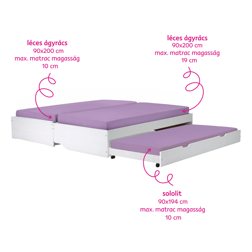 Matrac maximális magassága a kihúzható pótágyhoz: 10 cm