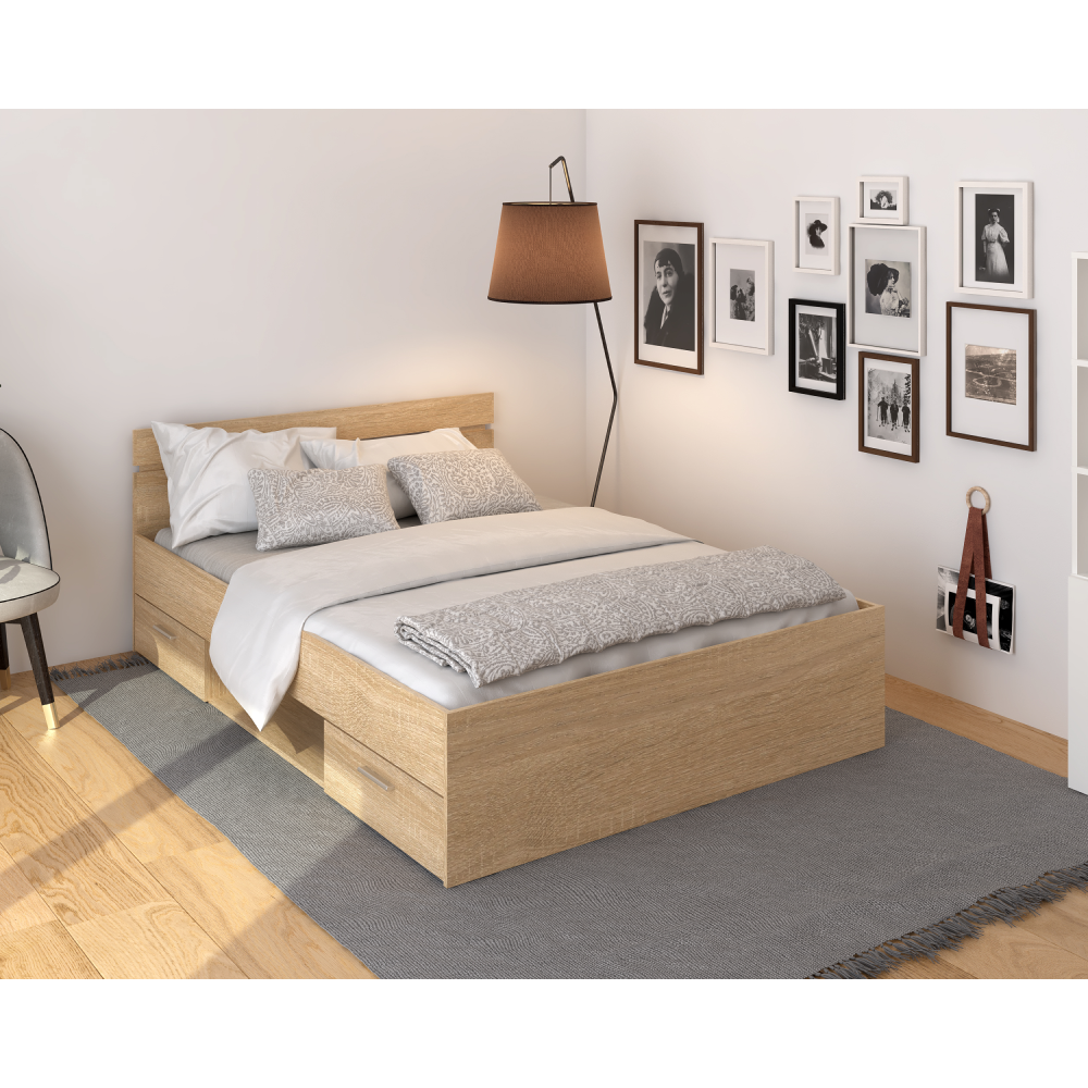 Ágykeret, 140x200, sonoma tölgyfa, MICHIGAN NEW