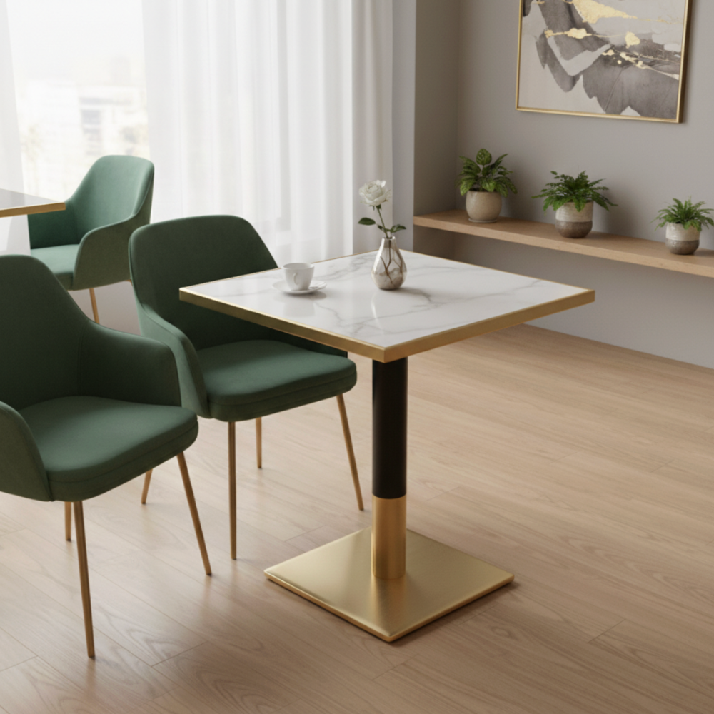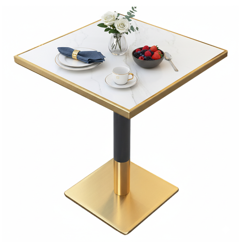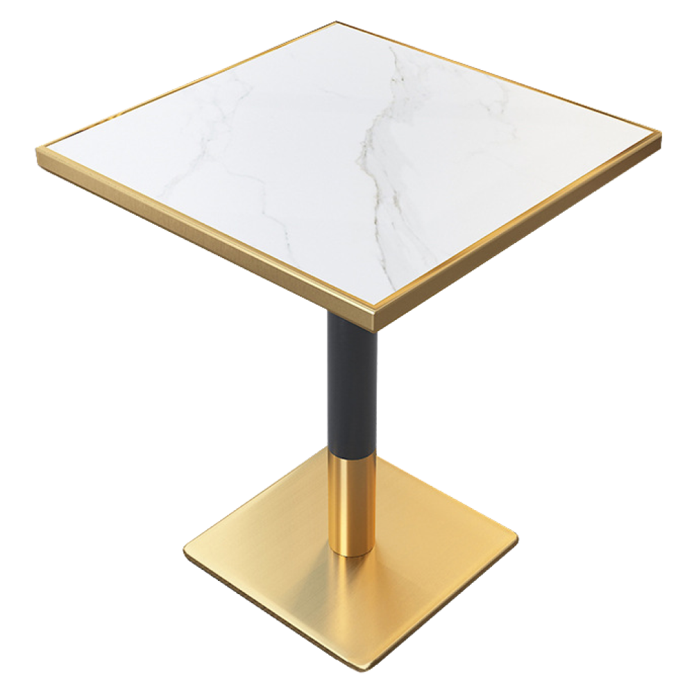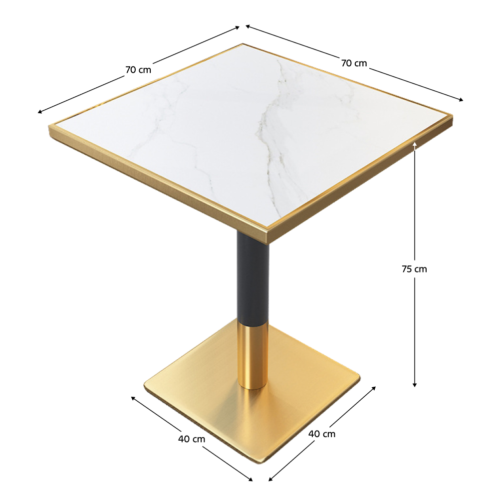 Étkező bisztró asztal. fehér márvány/fekete/arany. 70x70 cm. PRESTON