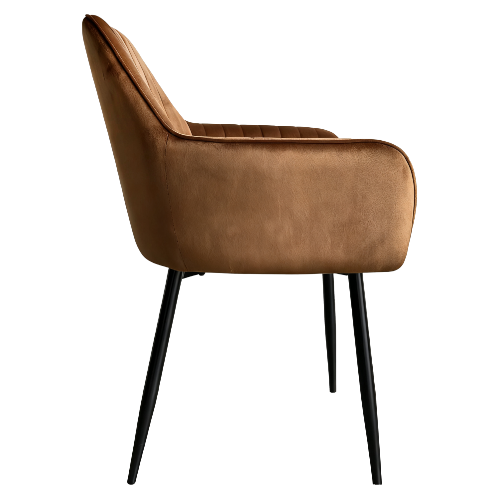 Anyag: Velvet szövet/fém A szövet kopásállósága a Martindale teszt szerint: 80 000 kopás Szín: barna/fekete Méretek (SzxMéxMa): 58x58x86 cm Ülés magassága: 50 cm Ülés mélysége: 43 cm Ülés szélessége: 44 cm Háttámla szélessége: 44 cm Háttámla magassága: 33 cm Étkezői Dekoratív steppelés Dizájnos Teherbírás: 100 kg Szétszerelve szállítva