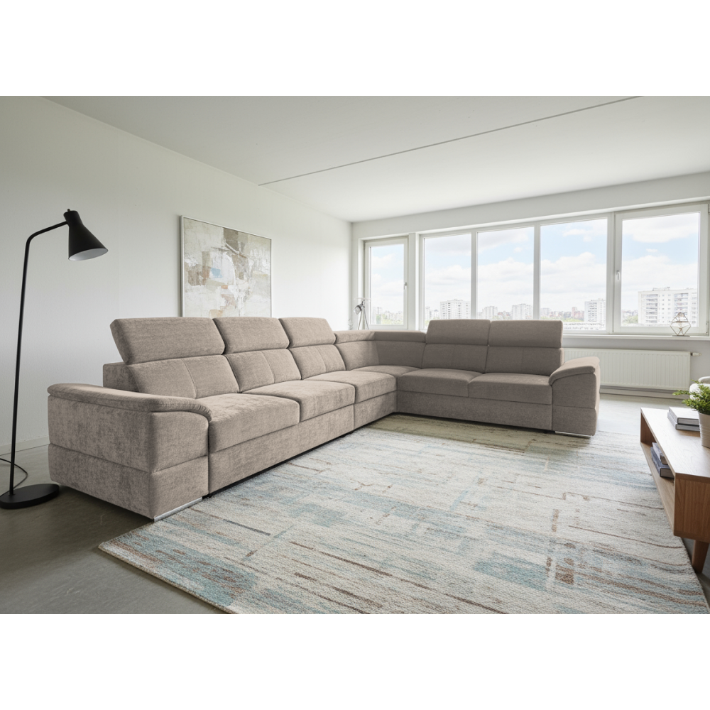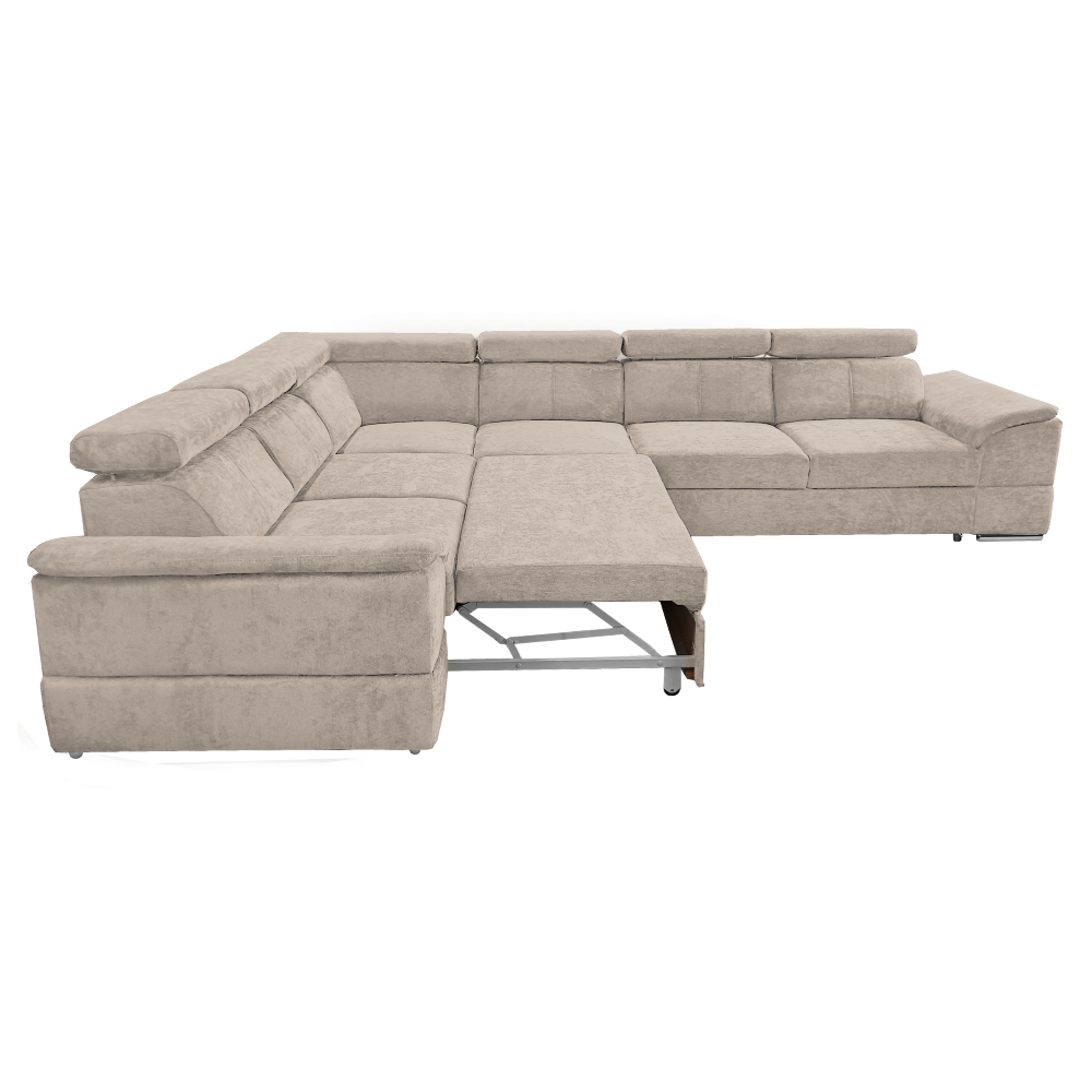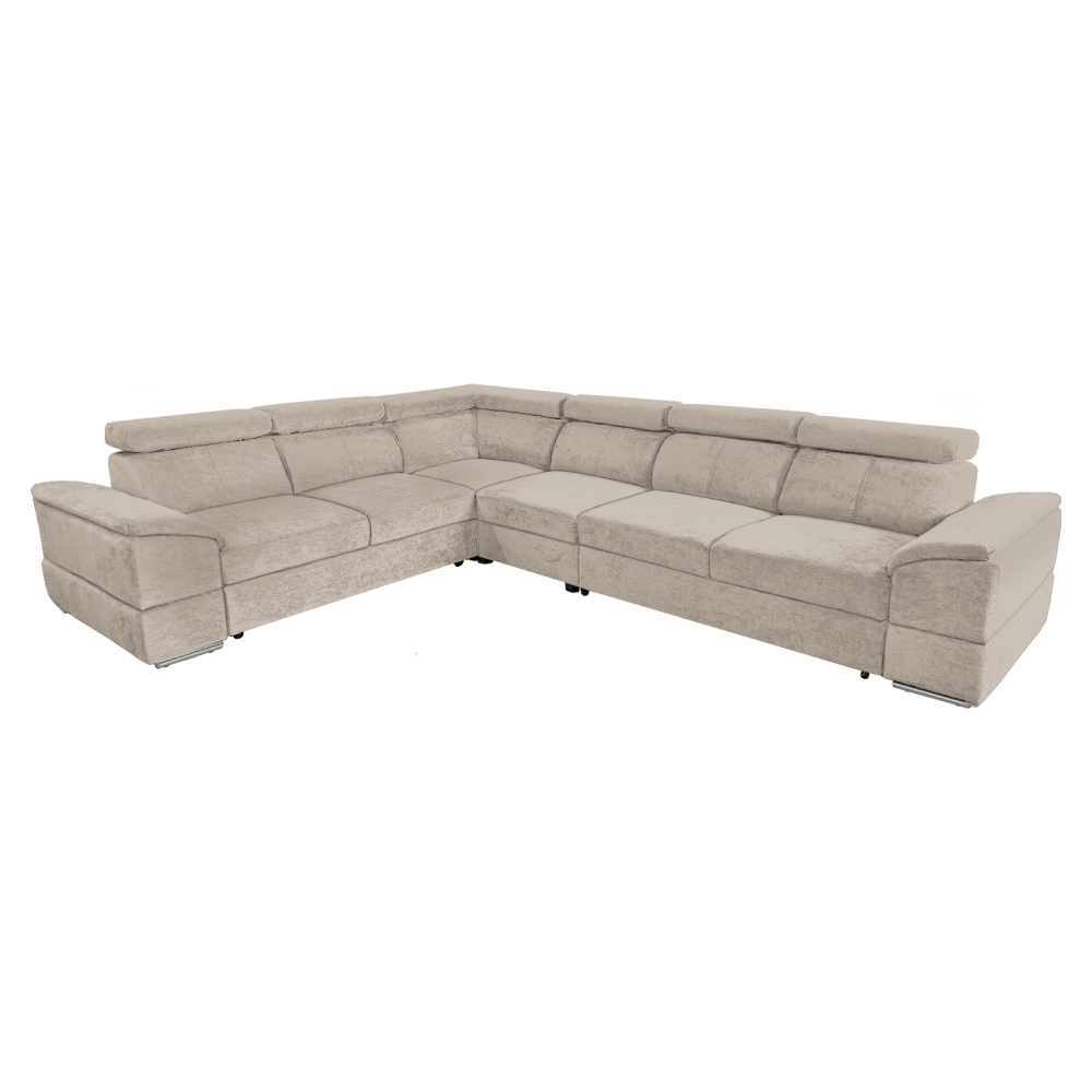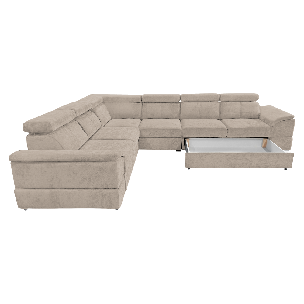 nyag: szövet Sereno 683 A szövet kopásállósága: 80 000 Martindale Szín: bézs Méretek (SzéxMéxMa): 334x264x80 cm Az ülőgarnitúra magassága felemelt támasztékokkal: 95 cm Kinyitható Fekvőterület (SzéxH): 183x125 cm Ülőrész magassága: 43 cm Ülőrész mélysége: 56 cm A kartámasz méretei SzéxMa: 35x51 cm A háttámla magassága: 30 cm Fejtámla magassága: 27 cm Lábak magassága: 4 cm Kárpitozott Univerzális Rakodótérrel 5 állítható fejtámla 6 fokozatban állítható támasztékok Az ülőrész rugós kitöltéssel Szállítás szétszerelve Megvásárolható a Sereno szövet 9 színváltozatában ár: 586 500 Ft és a Majestic szövet 11 színében ár: 620 900 Ft. Egyedi megrendelés esetén az összeg 20%-át előlegként kell kifizetni. Az előleg befizetése után kérése a gyártásba kerül. Szállítási idő 6-8 hét.