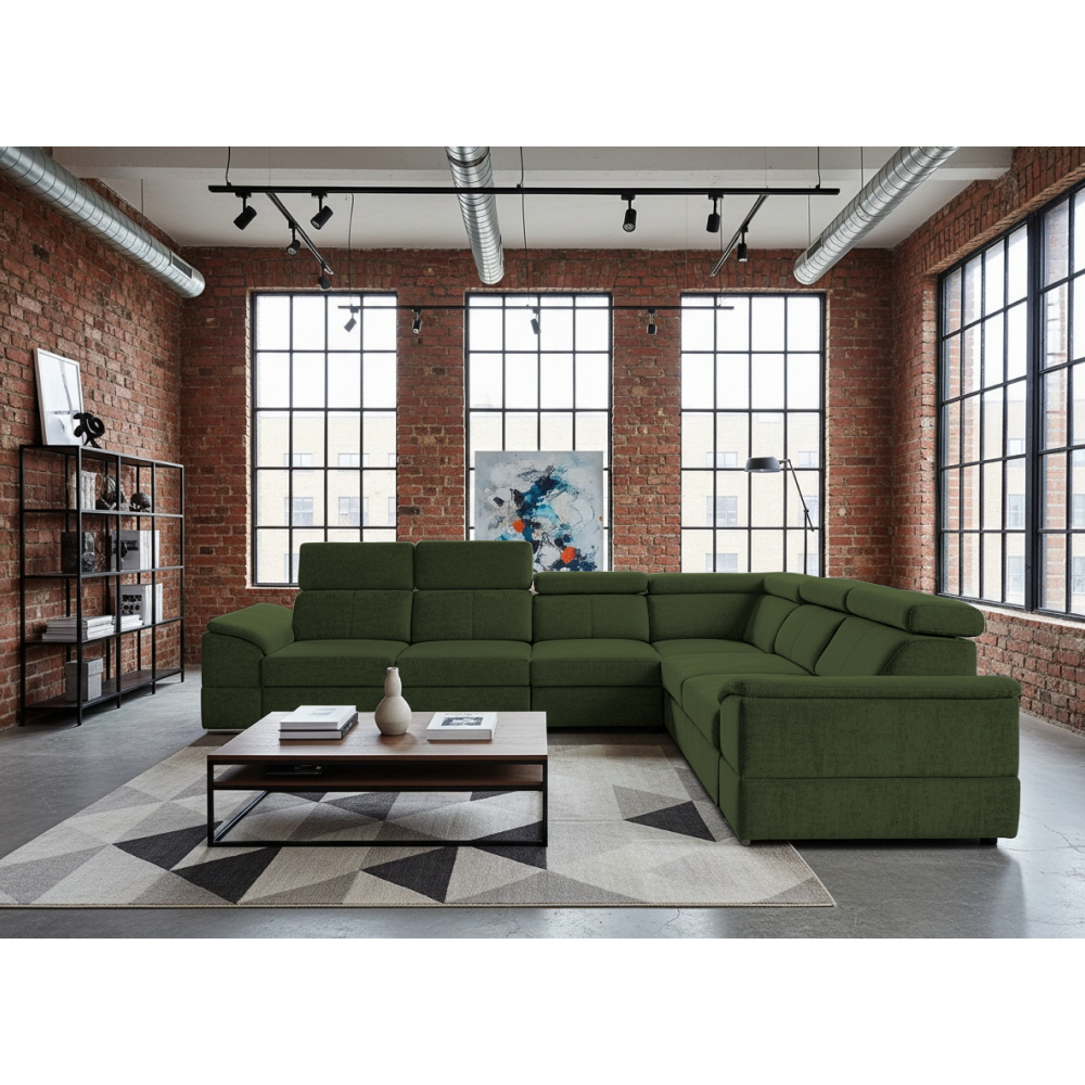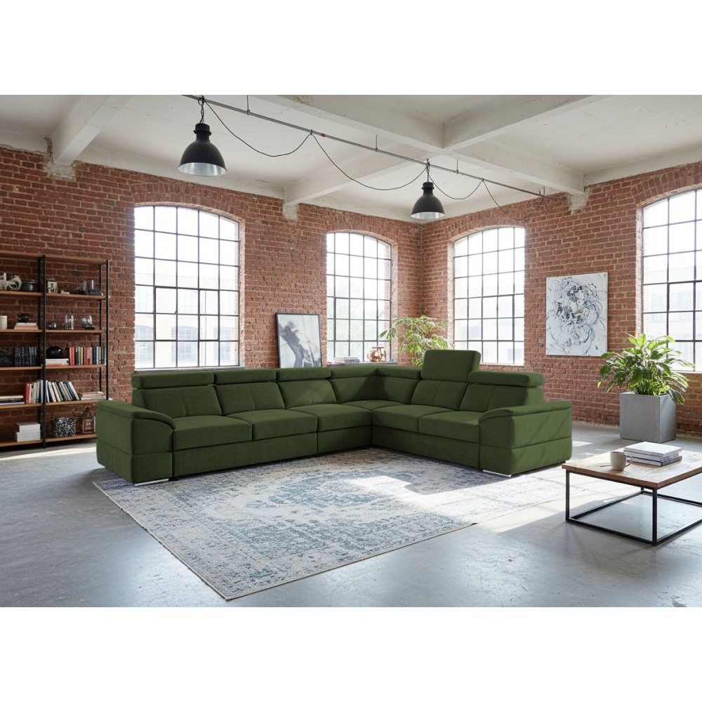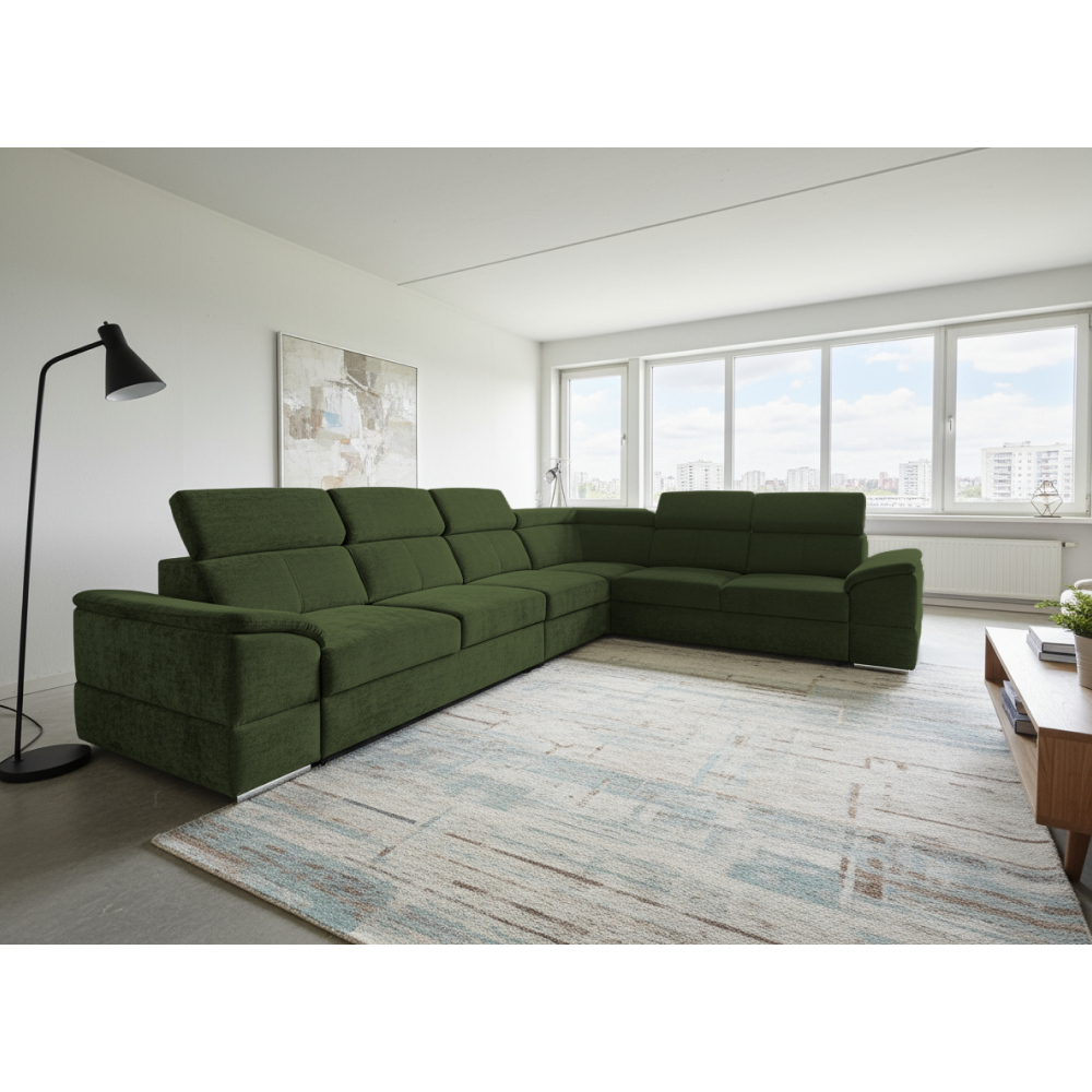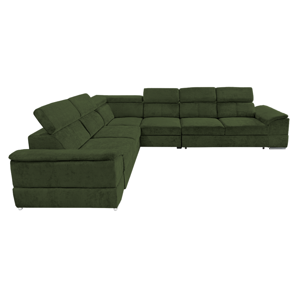 nyag: szövet Sereno 690 A szövet kopásállósága: 80 000 Martindale Szín: sötétzöld Méretek (SzéxMéxMa): 334x264x80 cm Az ülőgarnitúra magassága felemelt támasztékokkal: 95 cm Kinyitható Fekvőterület (SzéxH): 183x125 cm Ülőrész magassága: 43 cm Ülőrész mélysége: 56 cm A kartámasz méretei SzéxMa: 35x51 cm A háttámla magassága: 30 cm Fejtámla magassága: 27 cm Lábak magassága: 4 cm Kárpitozott Univerzális Rakodótérrel 5 állítható fejtámla 6 fokozatban állítható támasztékok Az ülőrész rugós kitöltéssel Szállítás szétszerelve Megvásárolható a Sereno szövet 9 színváltozatában ár: 586 500 Ft és a Majestic szövet 11 színében ár: 620 900 Ft. Egyedi megrendelés esetén az összeg 20%-át előlegként kell kifizetni. Az előleg befizetése után kérése a gyártásba kerül. Szállítási idő 6-8 hét.